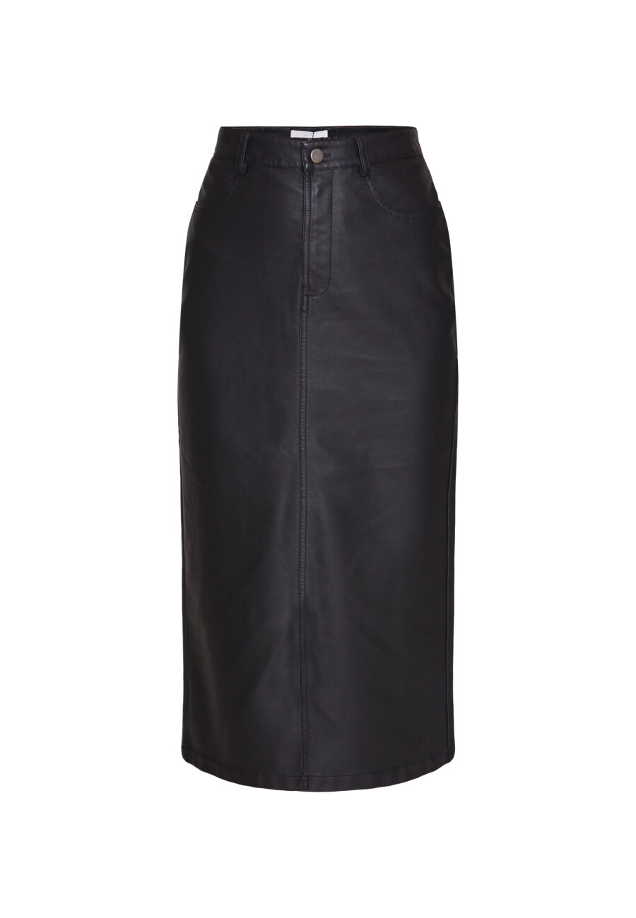 Nederdelen har en slids foran og kan både styles til fest med en fin top og en blazer, eller til hverdag med et par strømpebukser og støvler.