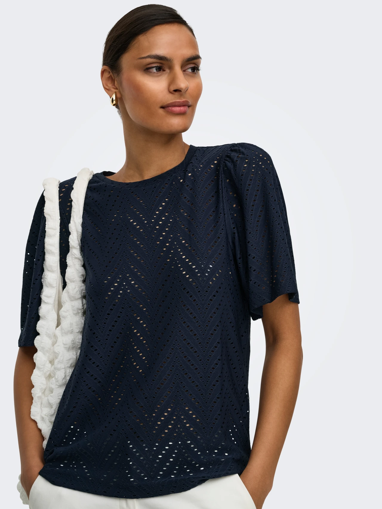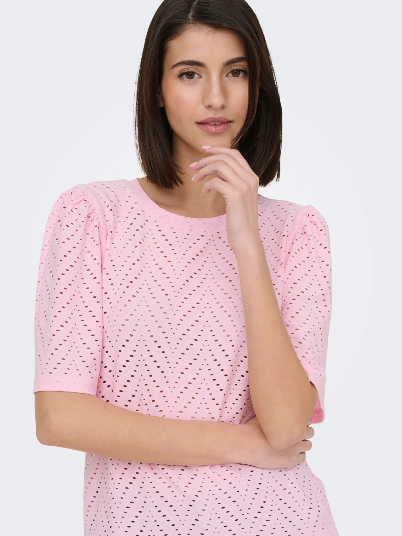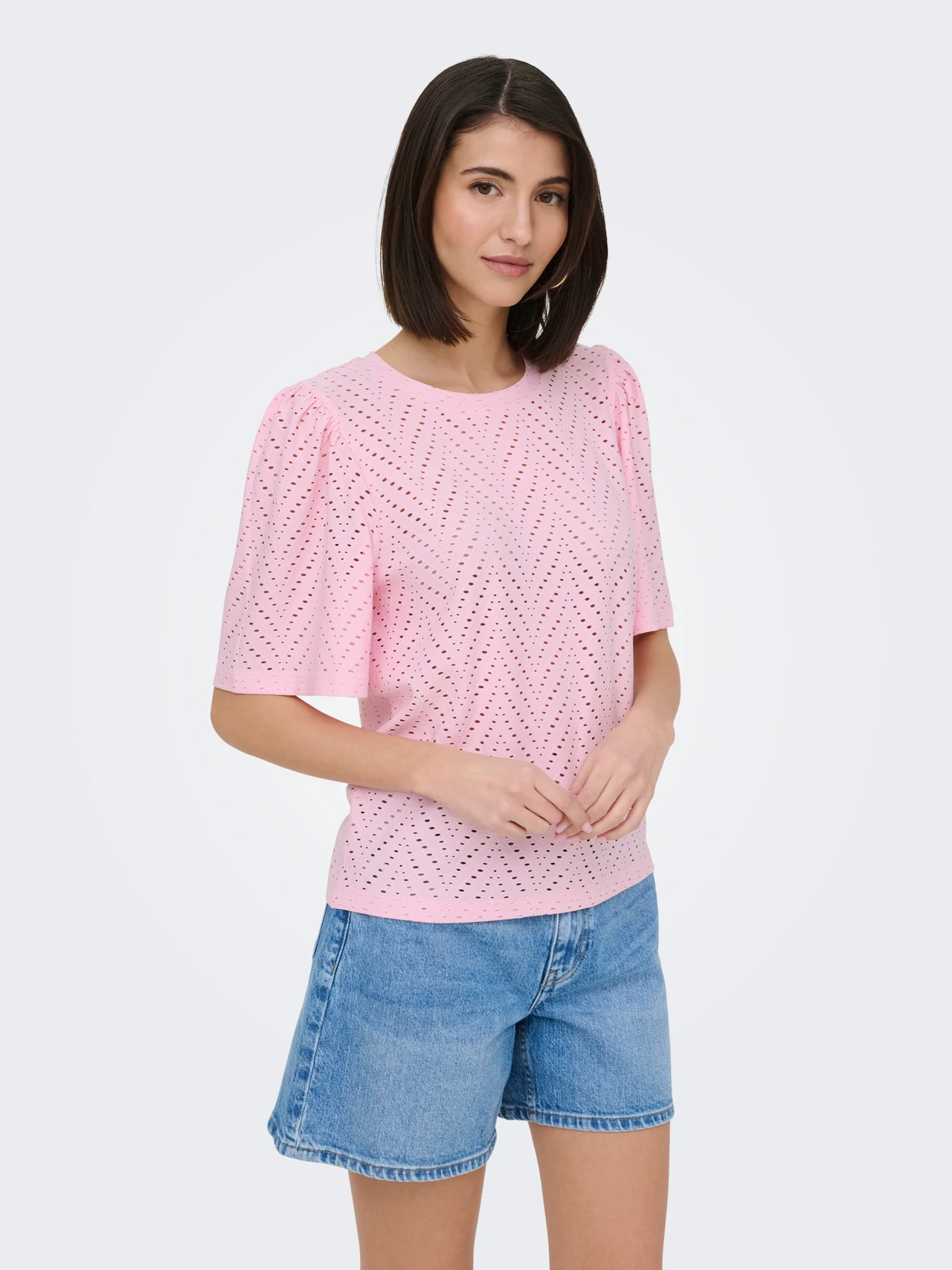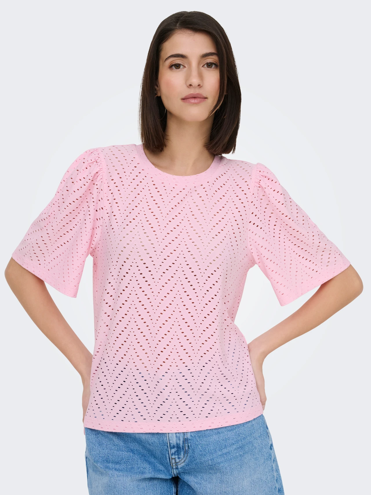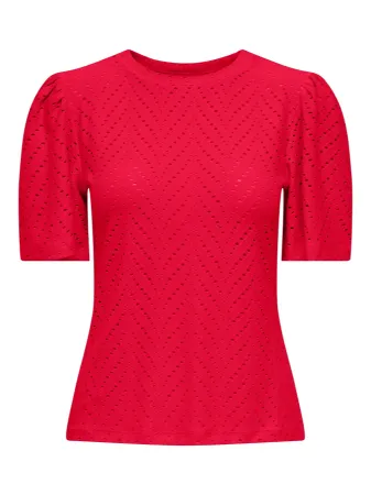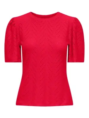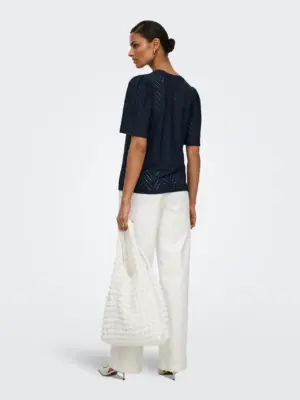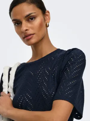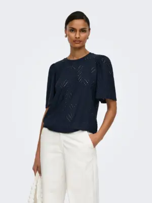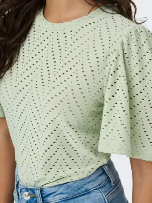 Sød bluse fra JDY med hulmønster og et fint løst kort ærme
