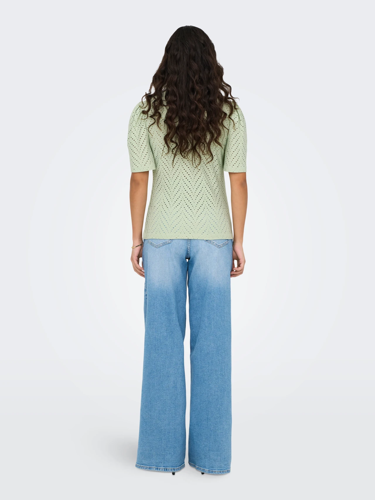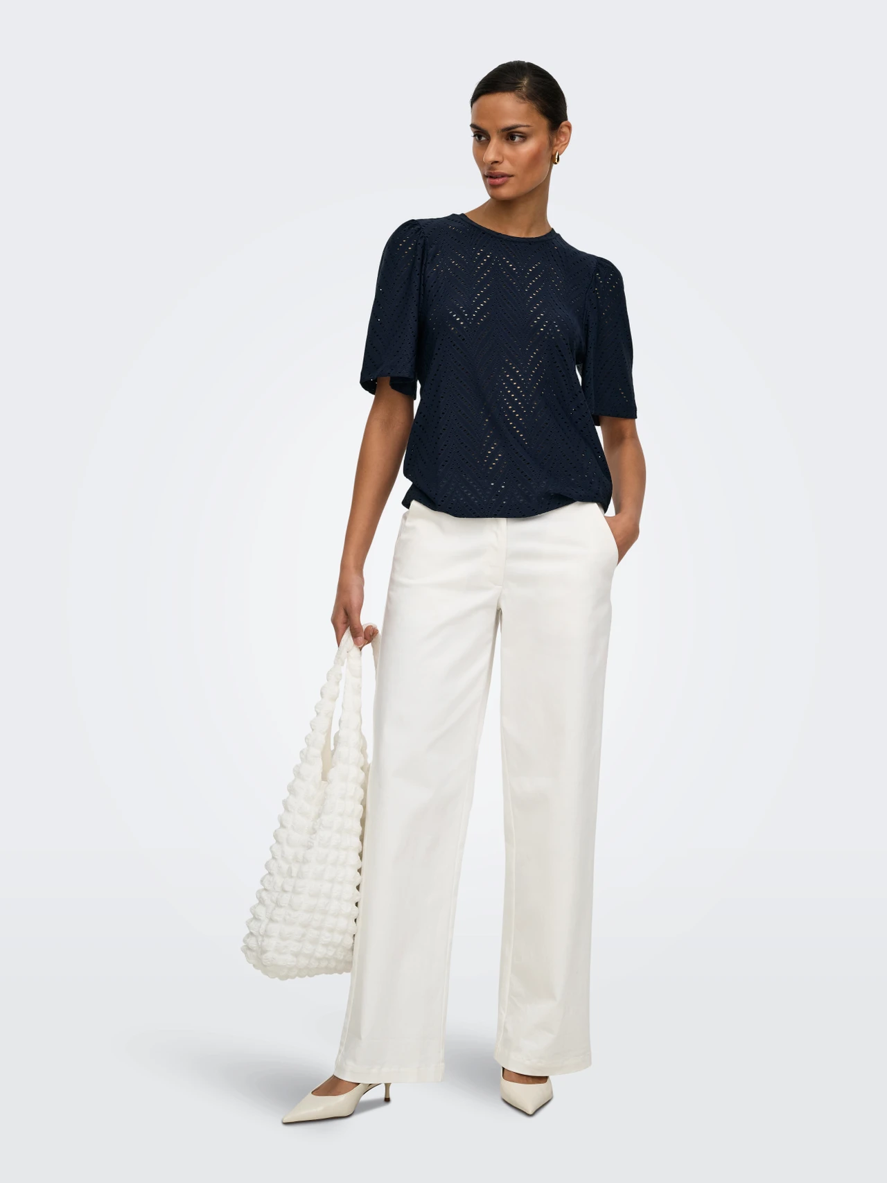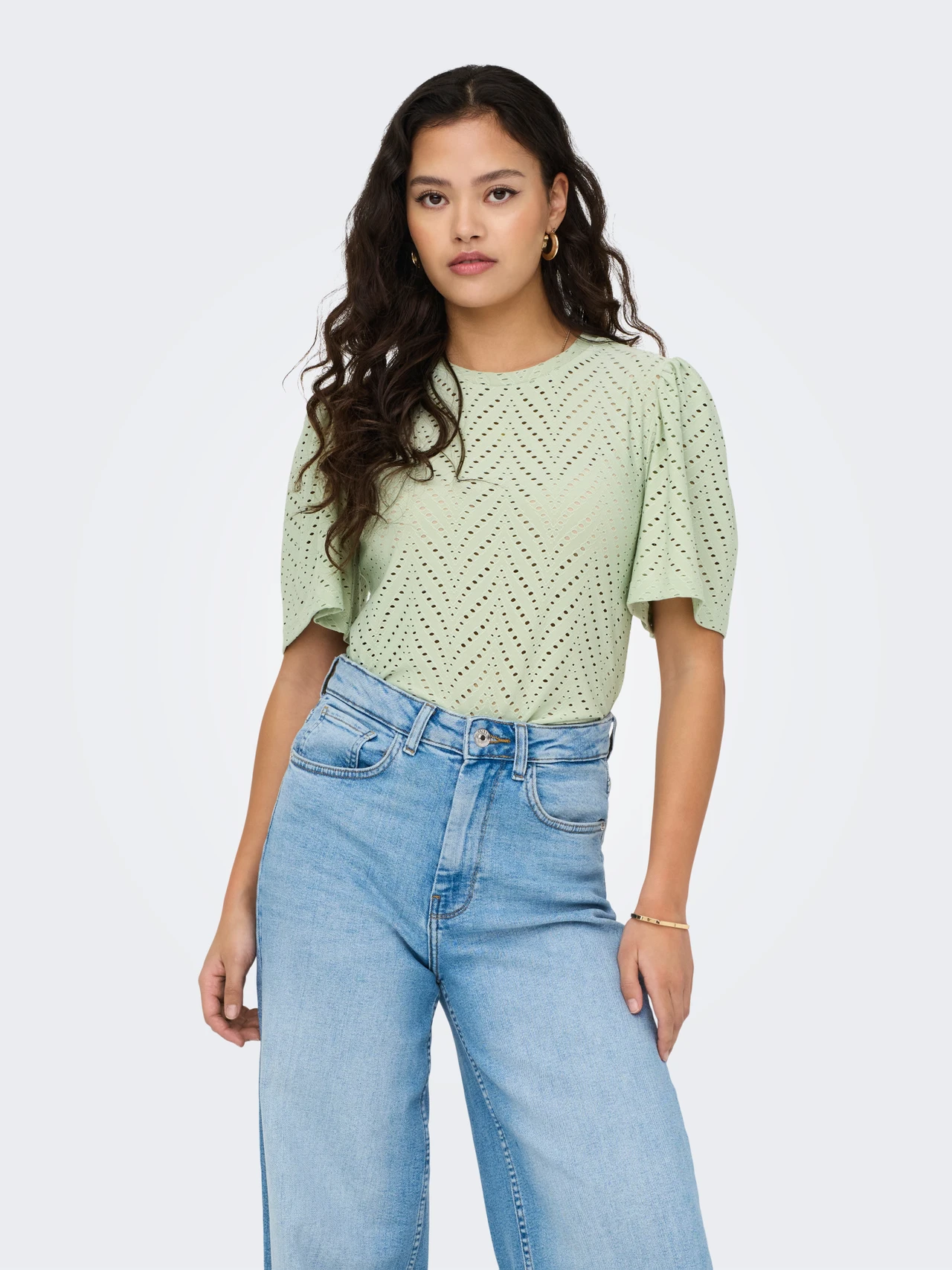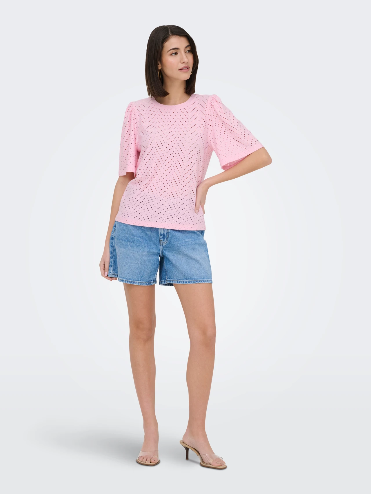 Sød bluse fra JDY med hulmønster og et fint løst kort ærme
