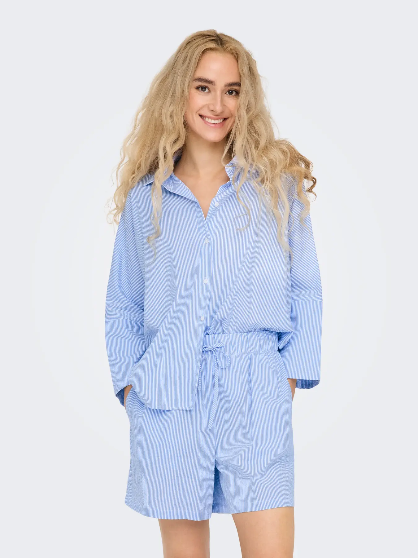 Lækker bomulds skjorte fra ONLY den er oversize i modellen og hvide striber
