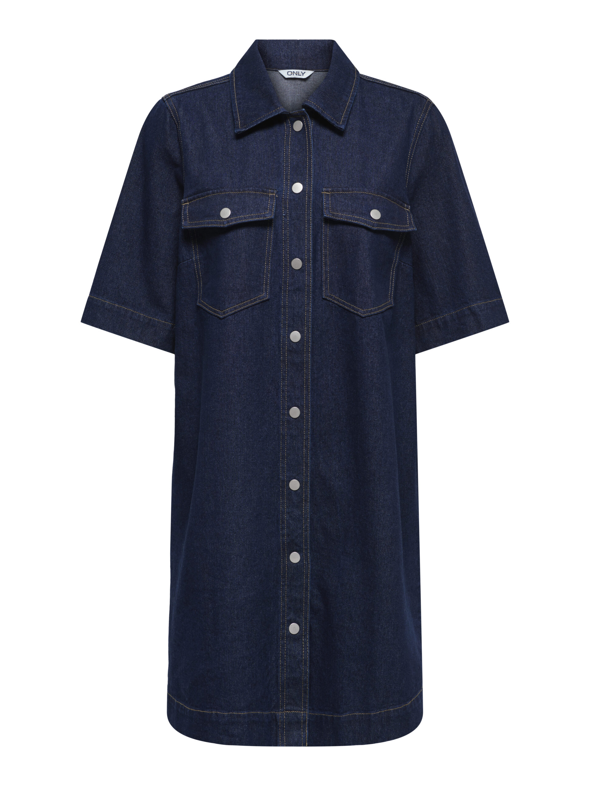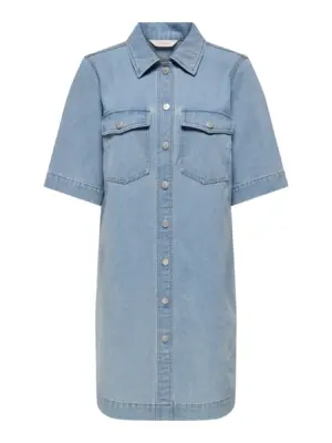 Flot denim kjole fra ONLY, med korte ærmer og lommer på brystet