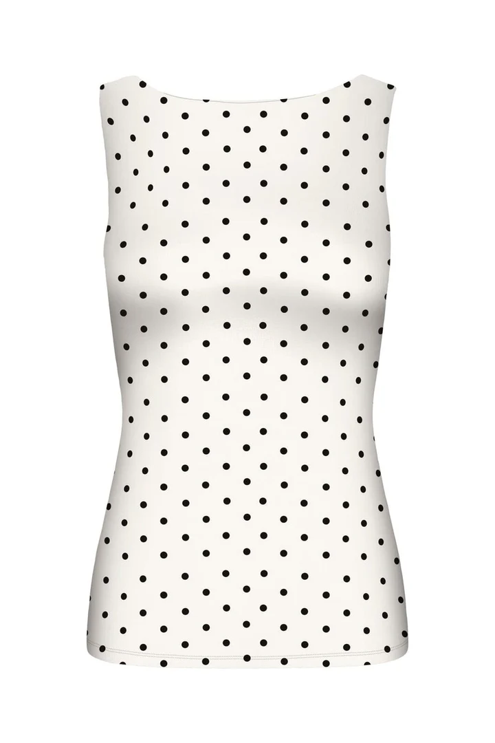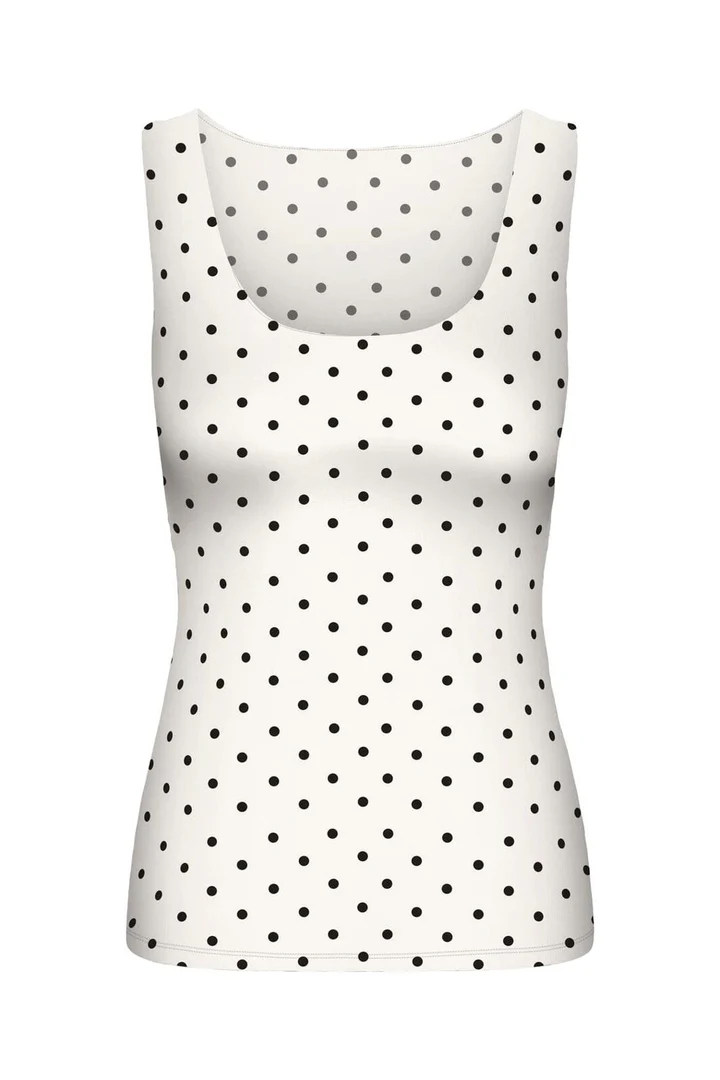 Mega flot top fra ONLY, med polkaprikker, og er vendbar.