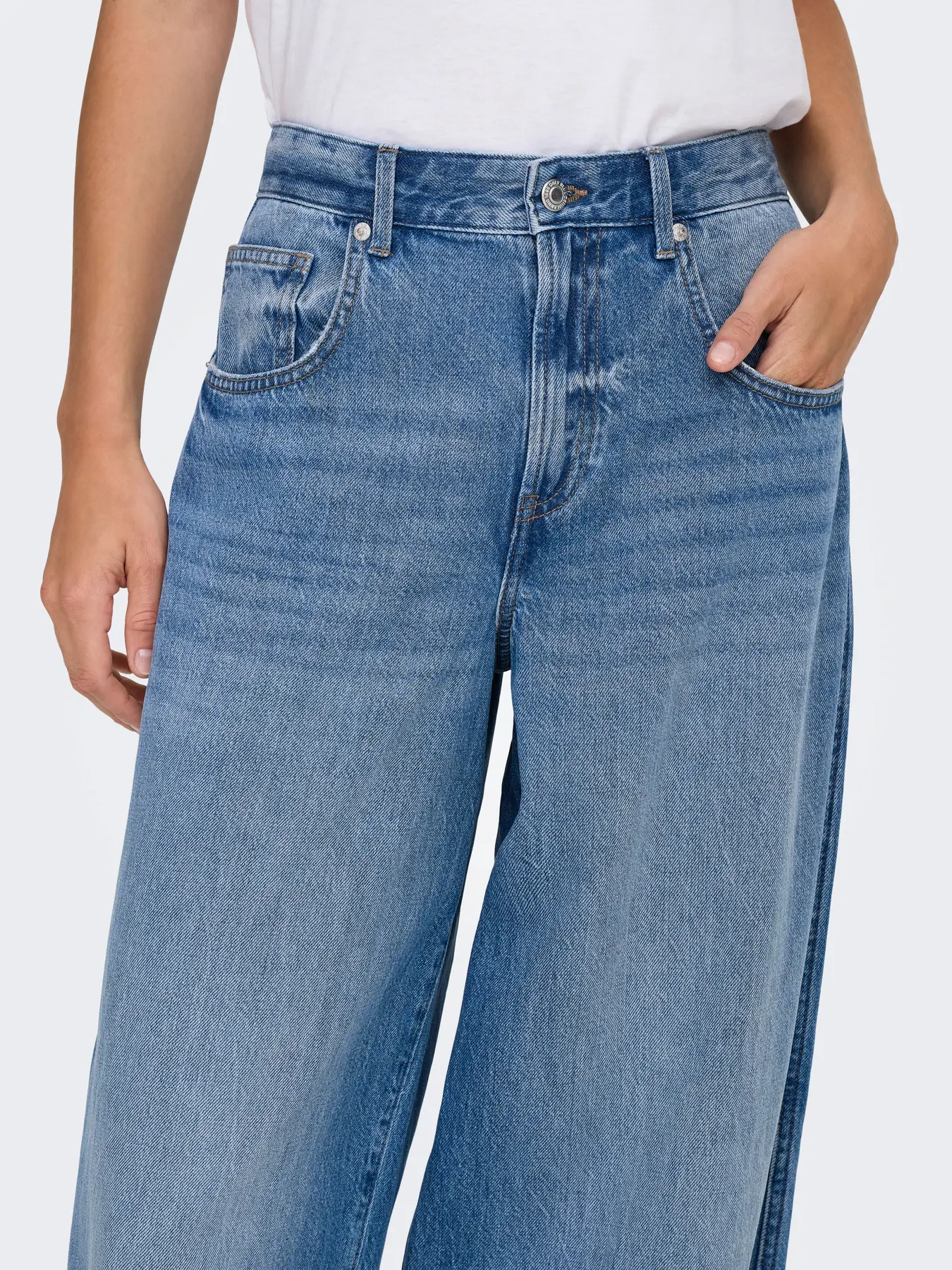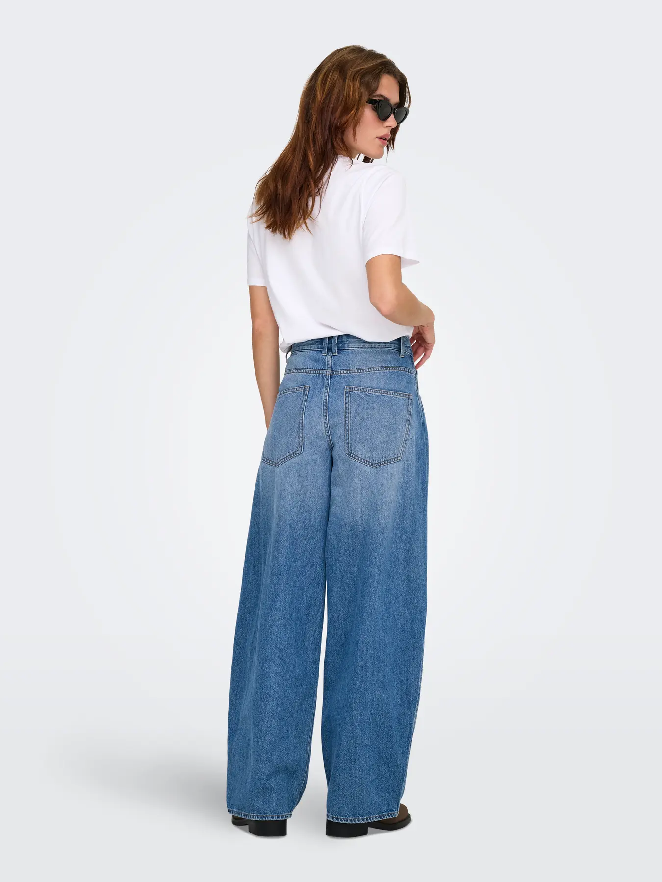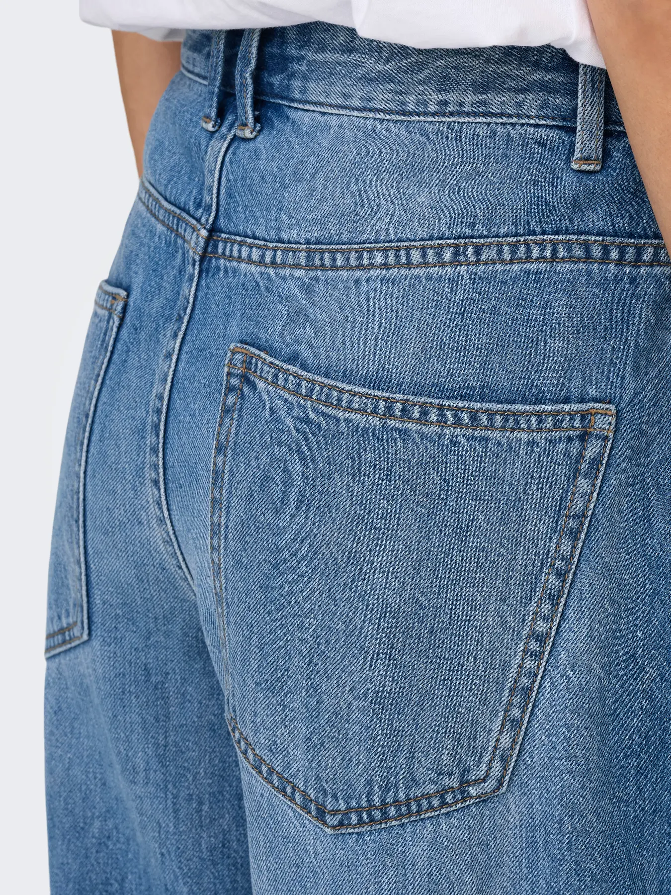 Mega cool high waist barrel jeans fra ONLY. Jeansene har lækker blå denimfarve og detaljer som bæltestropper, der gør det nemt at supplere med et bælte for ekstra stil.