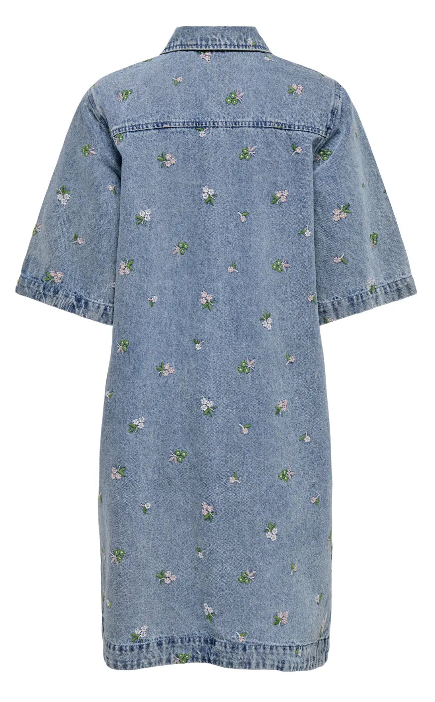 Mega cool denim kjole fra ONLY, med blomster
