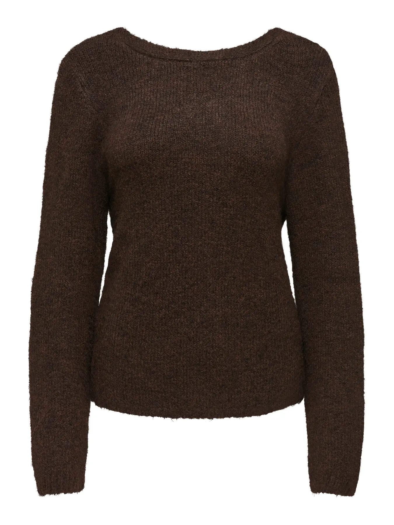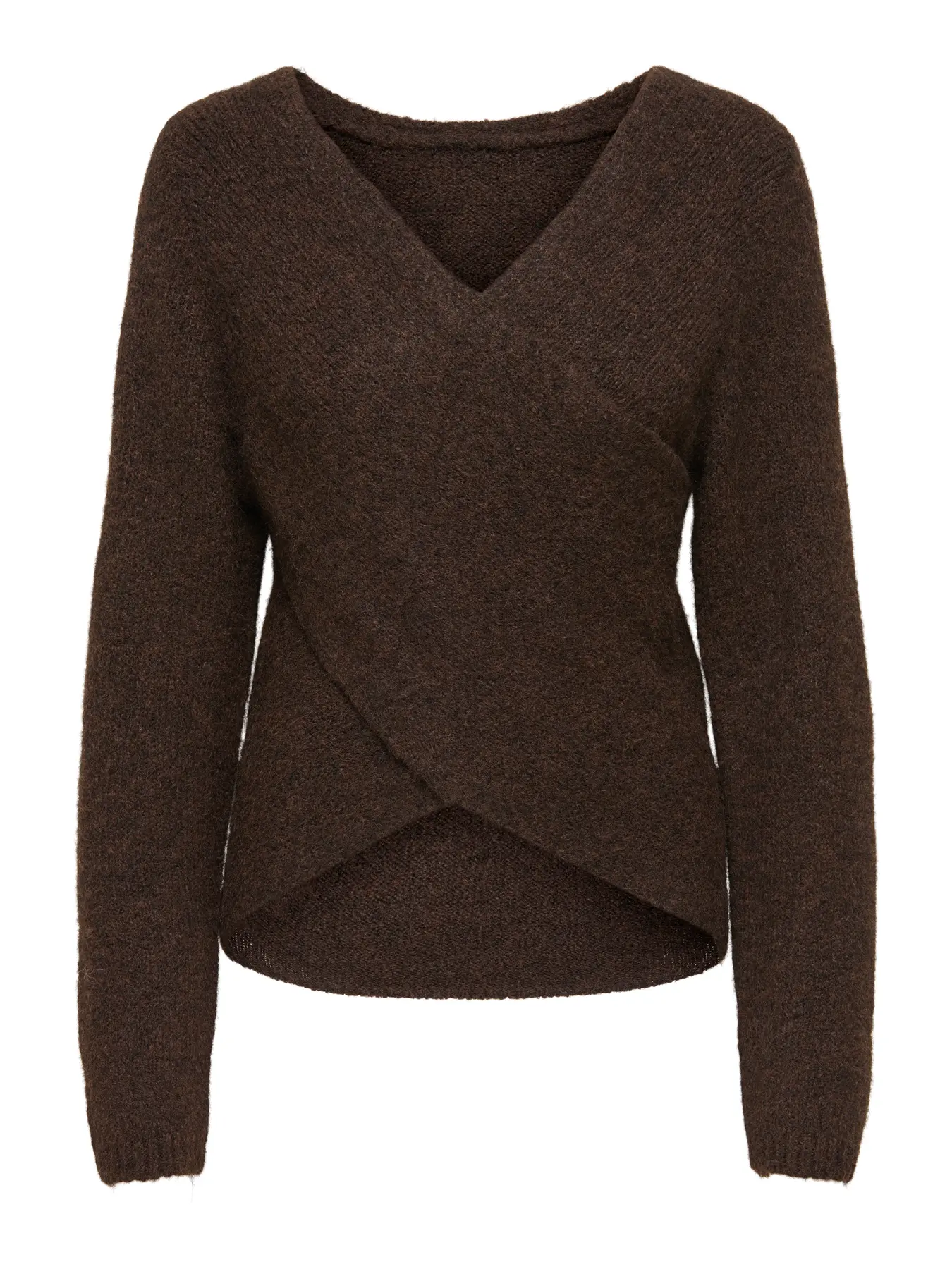 Skøn strik fra ONLY med wrap detalje og V-hals. Strikken er vendebar, så du også kan få en flot ryg i strikken.