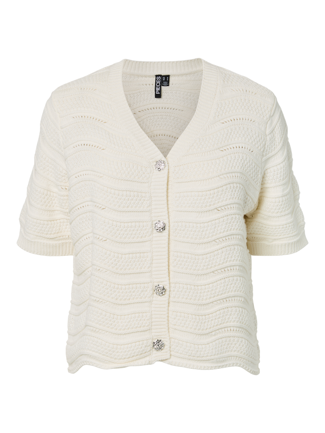 Flot Strik cardigan fra PIECES, med v-hals og flotte knapper hele vejen ned.