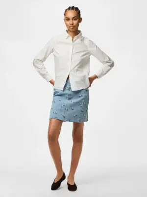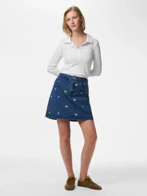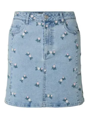 PCFLORA HW SHORT DENIM EMB SKIRT NOOS.