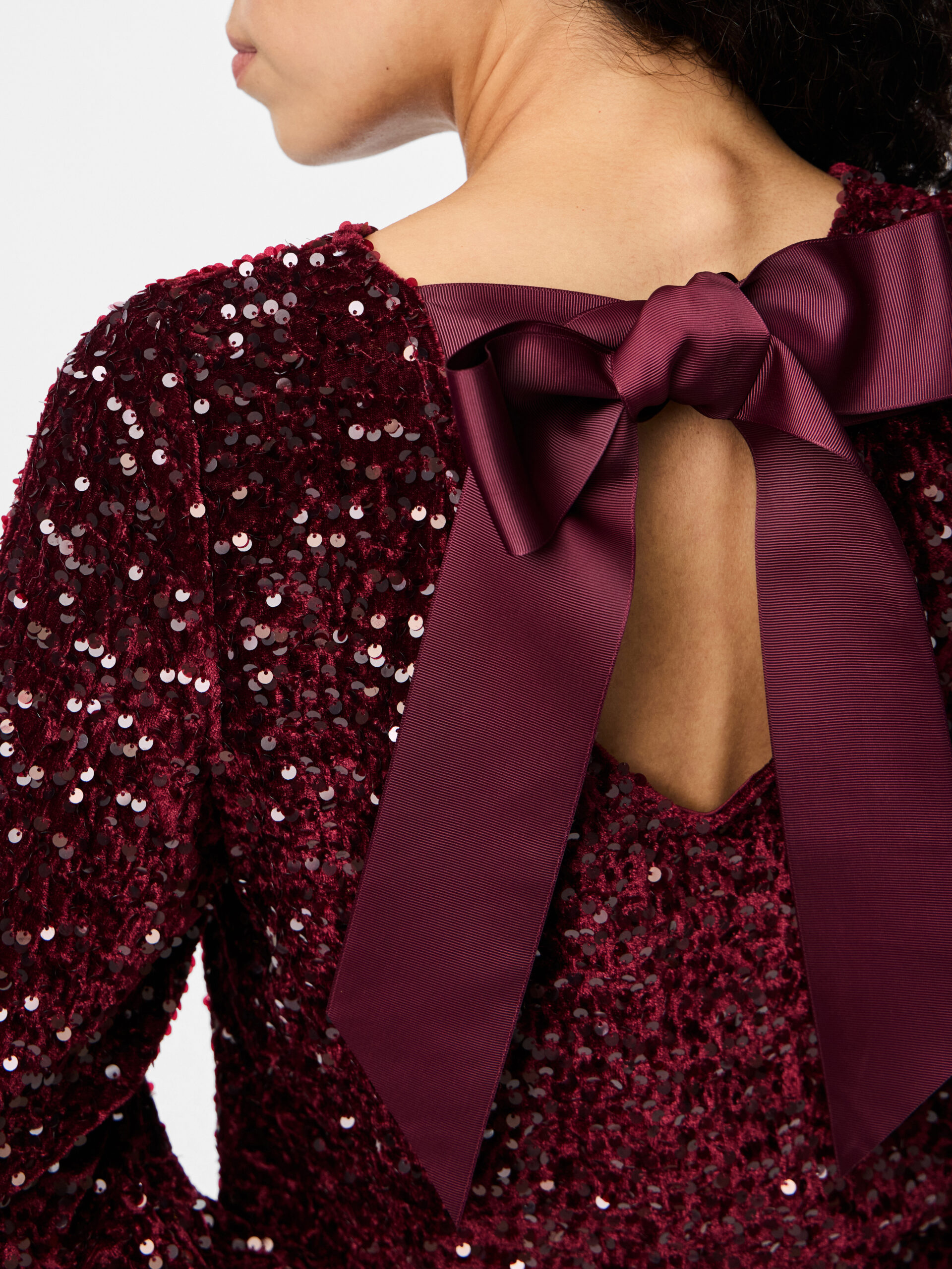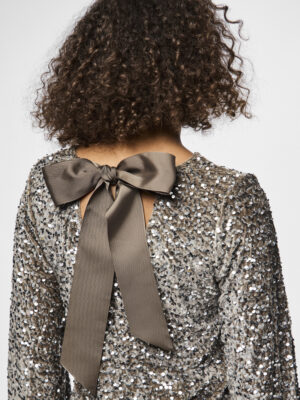 Meget smuk bluse fra PIECES fyldt med palietter pg bindes bag på med en smuk sløjfe
