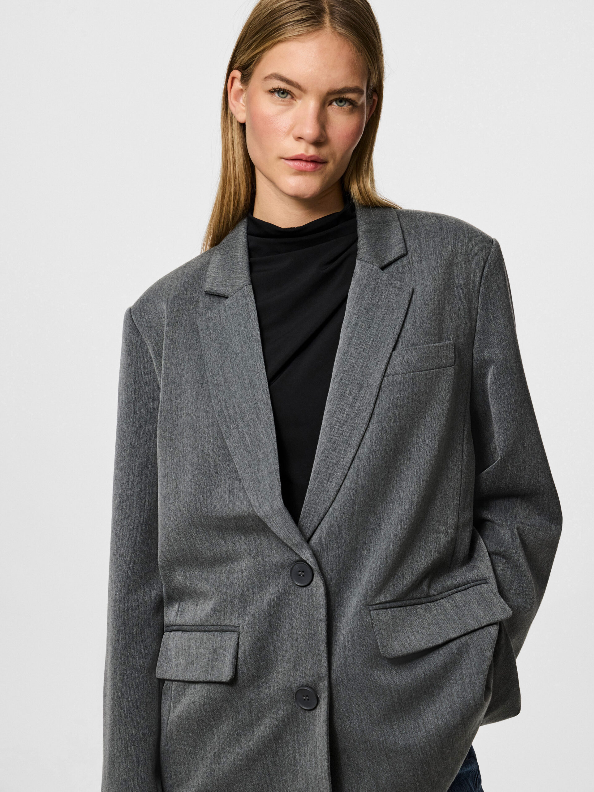 Super cool oversized, grå blazer med 2 knapper, fra PIECES.