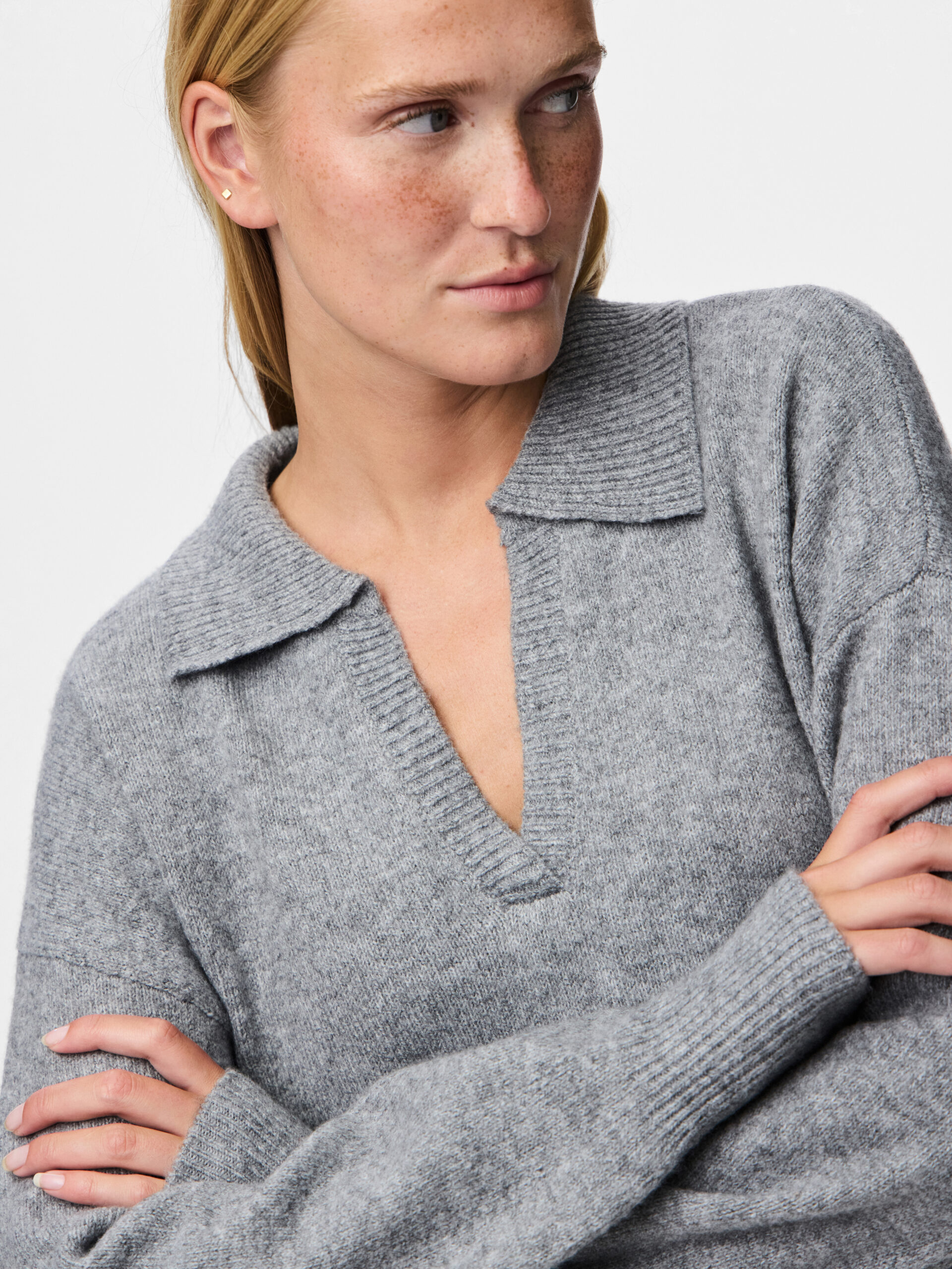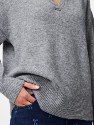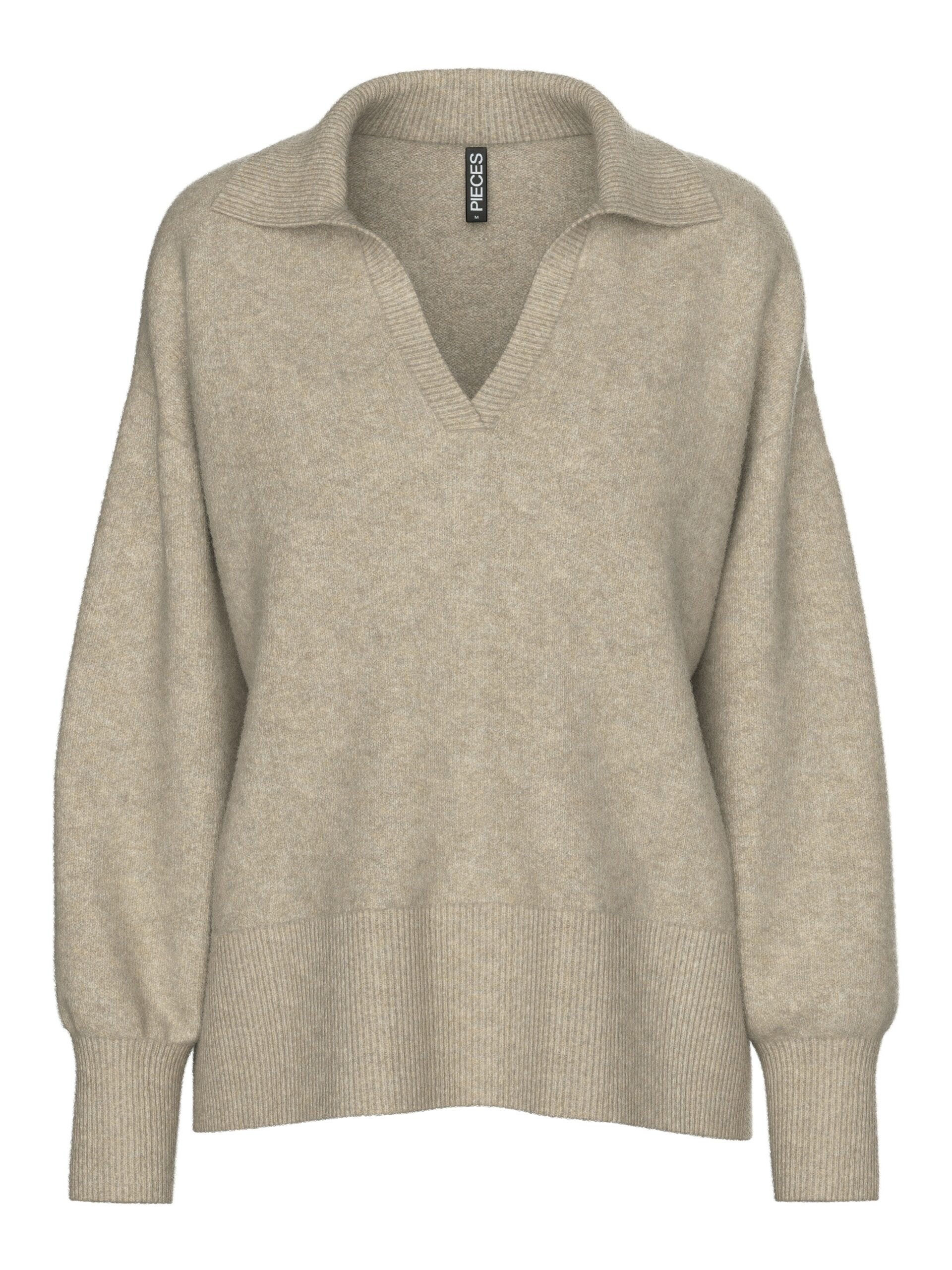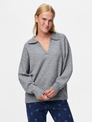 Lækker strik fra PIECES med polokrave og går ned i v foran