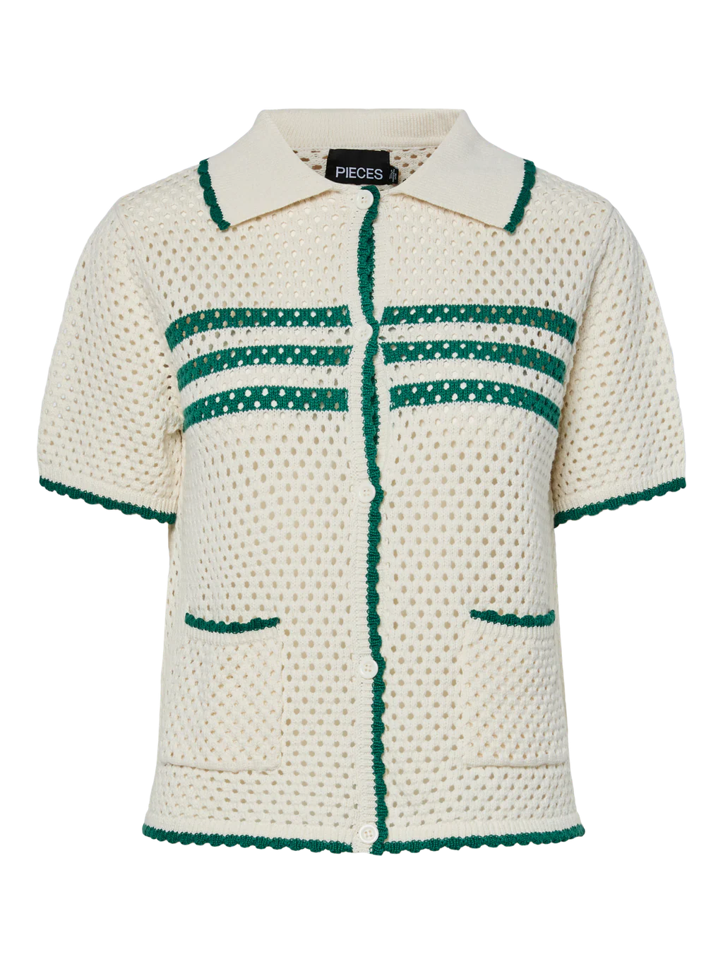 Fin hulmønster strik fra PIECES med korte ærmer og polo krave