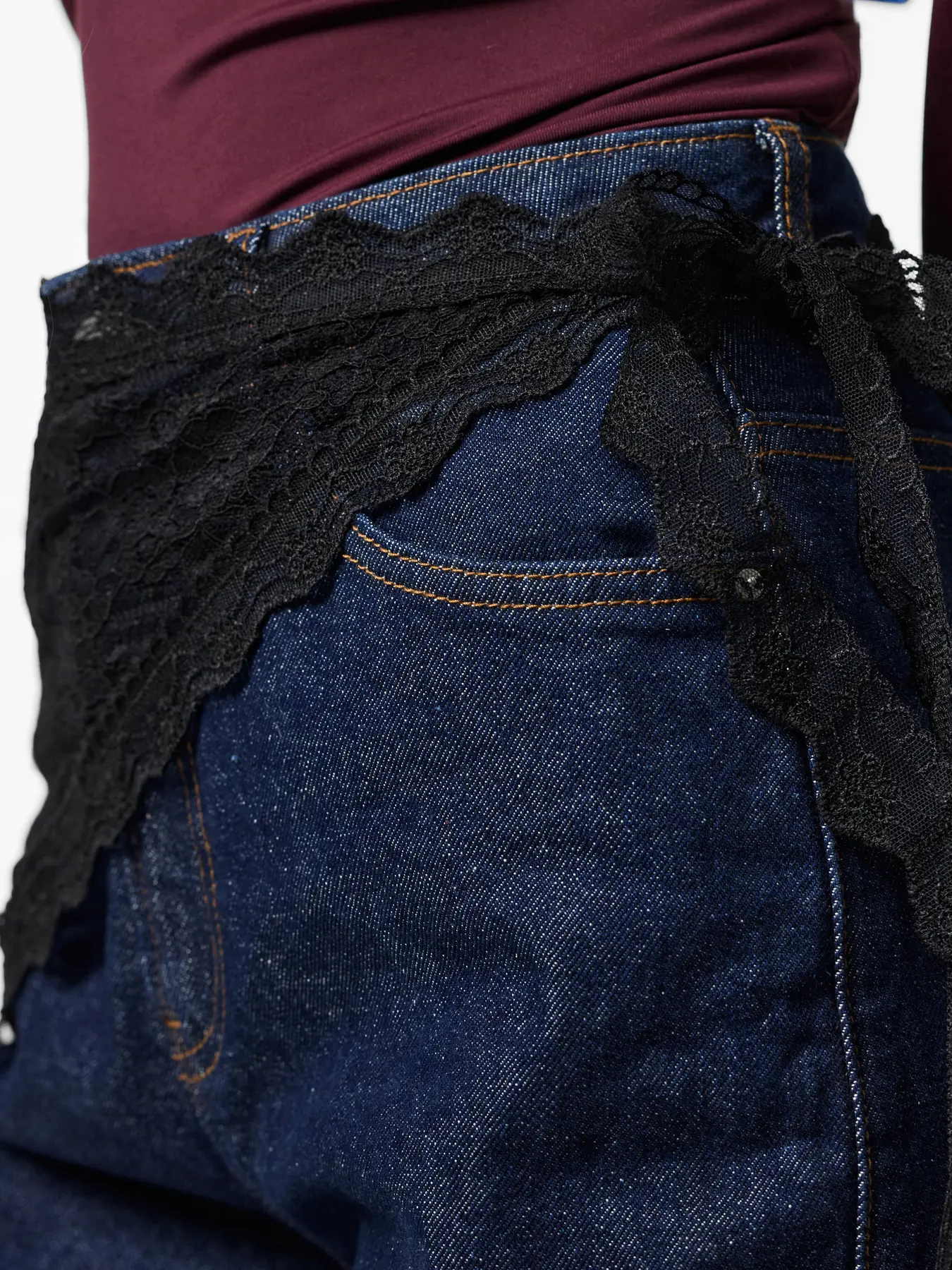 Trendy blonde tørklæde fra THREE M i trekantet form med blondemønster og blomstermotiver.