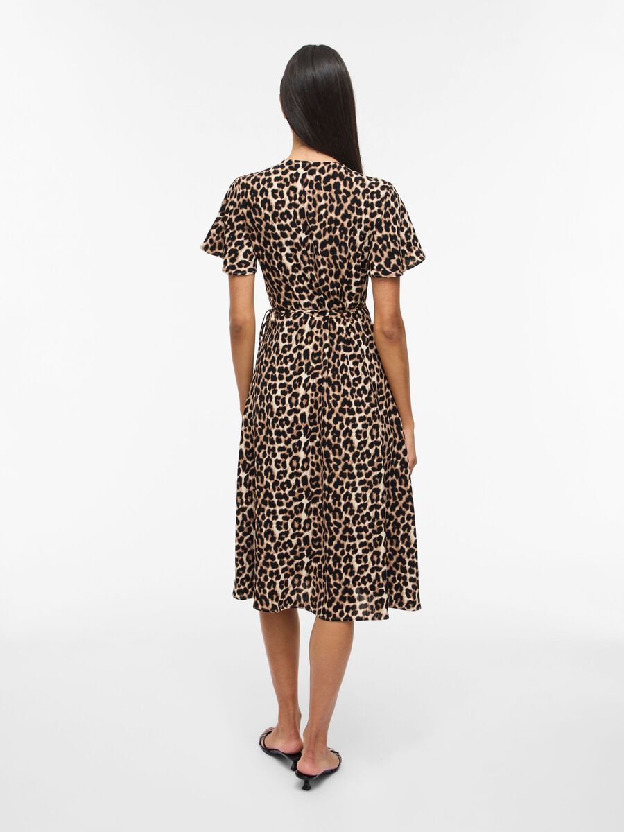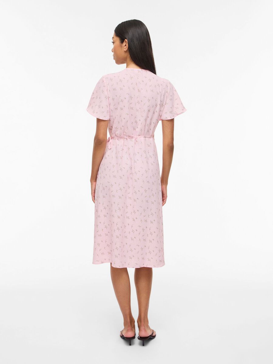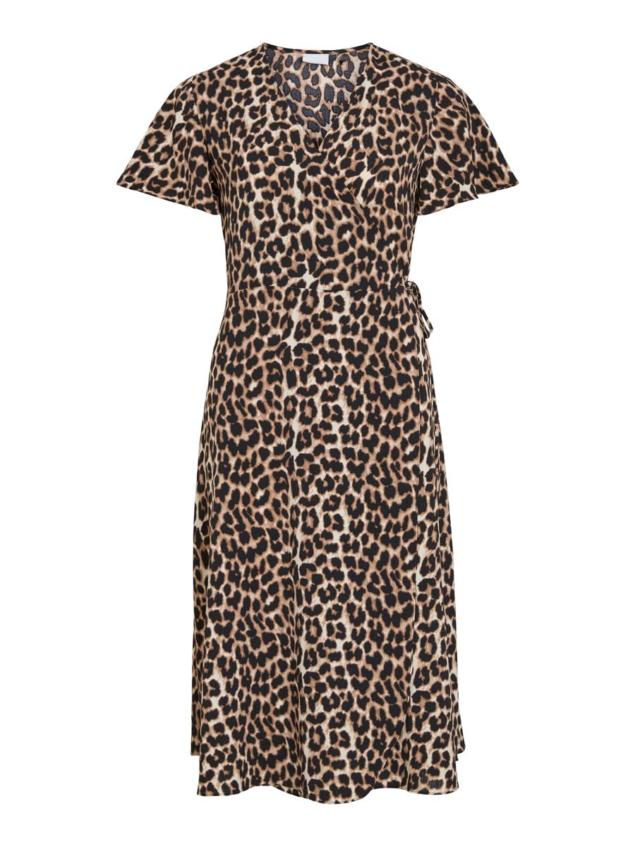 Fin lang slå om kjole fra VILA med mønster, med V-hals og korte ærmer.
