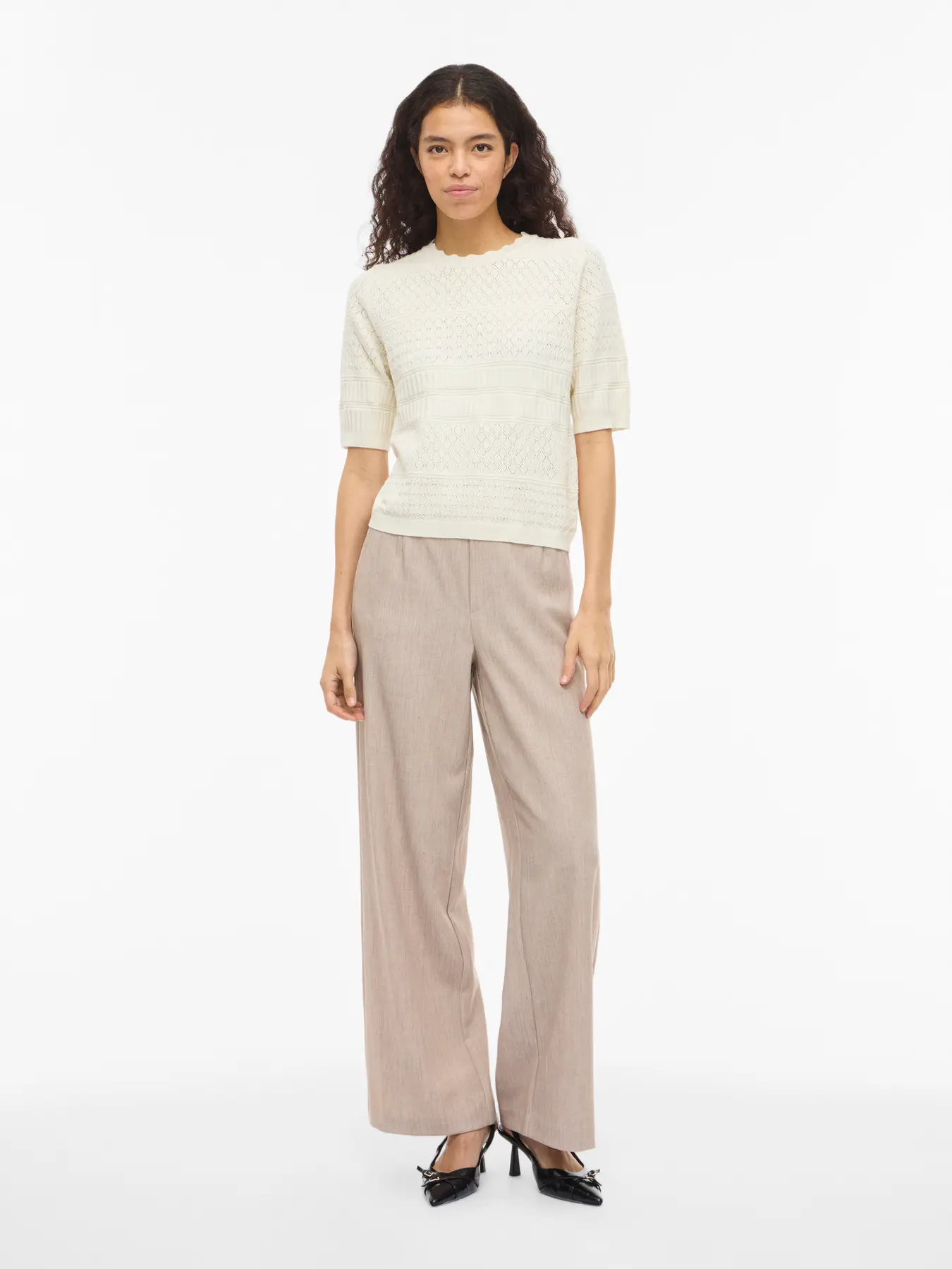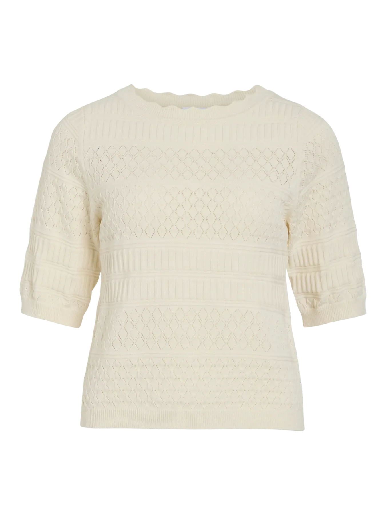 VIMILOS S/S O-NECK POINTELLE TOP – NOOS