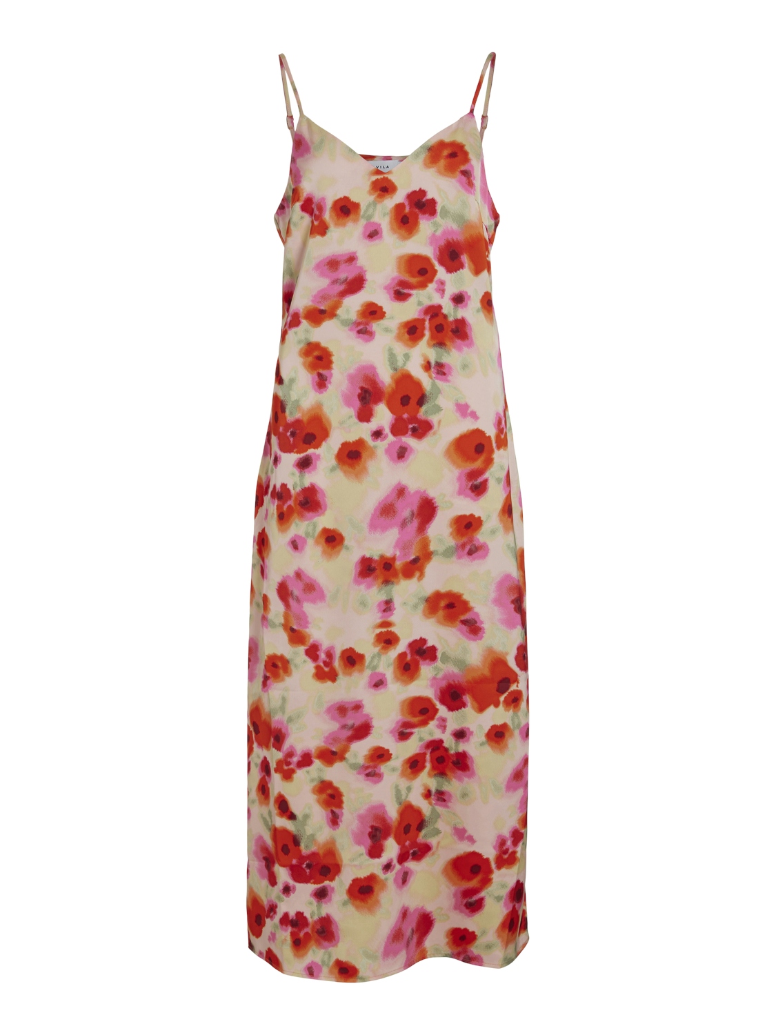 Smuk kjole fra VILA med tynde reguler bare stropper og det flotteste mønster.