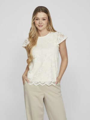 Smuk blonde top fra VILA med rund hals og knaplukning bagpå.