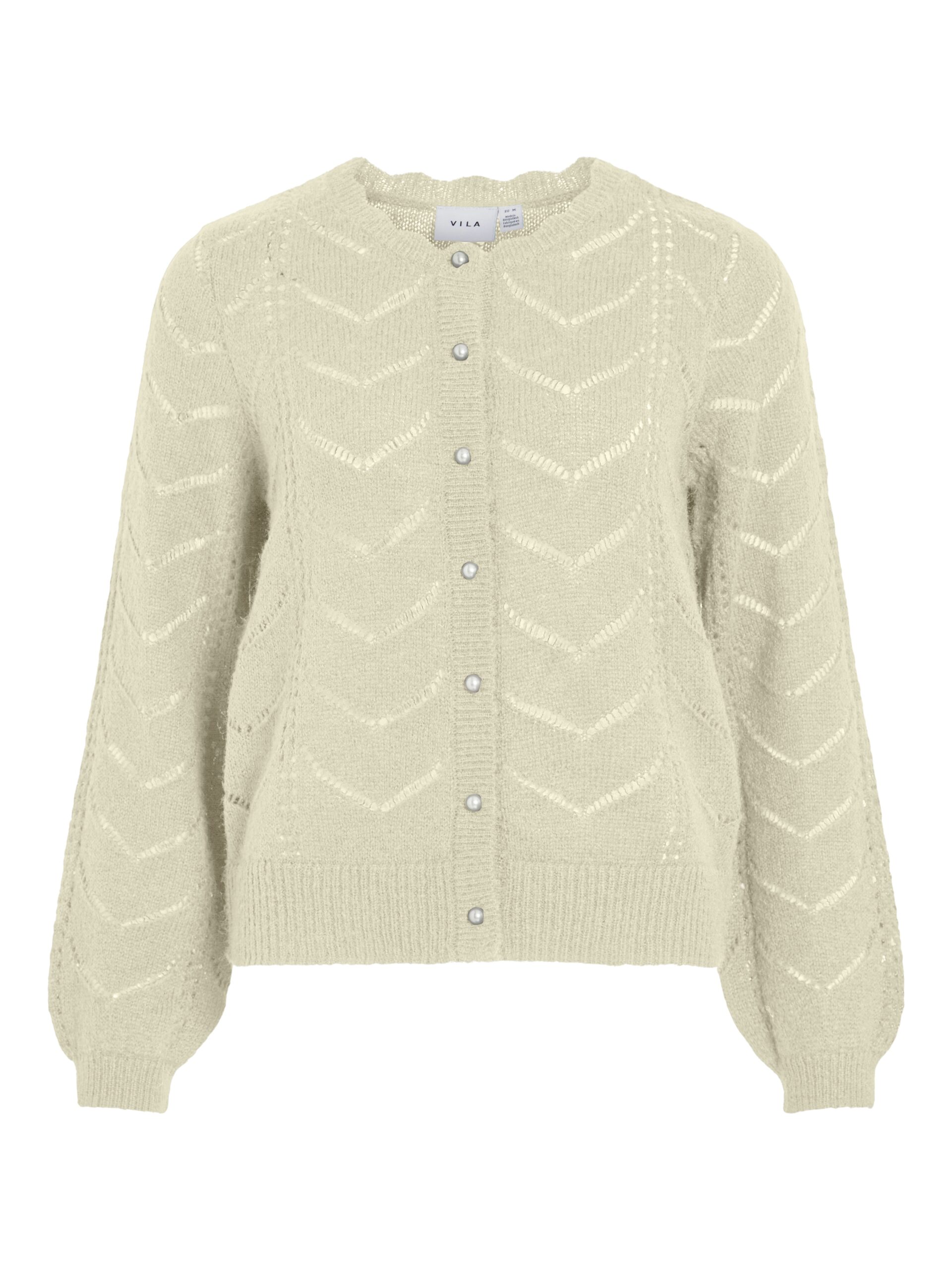 Smuk strikket cardigan fra VILA med fint hulmønster og flotte perle knapper
