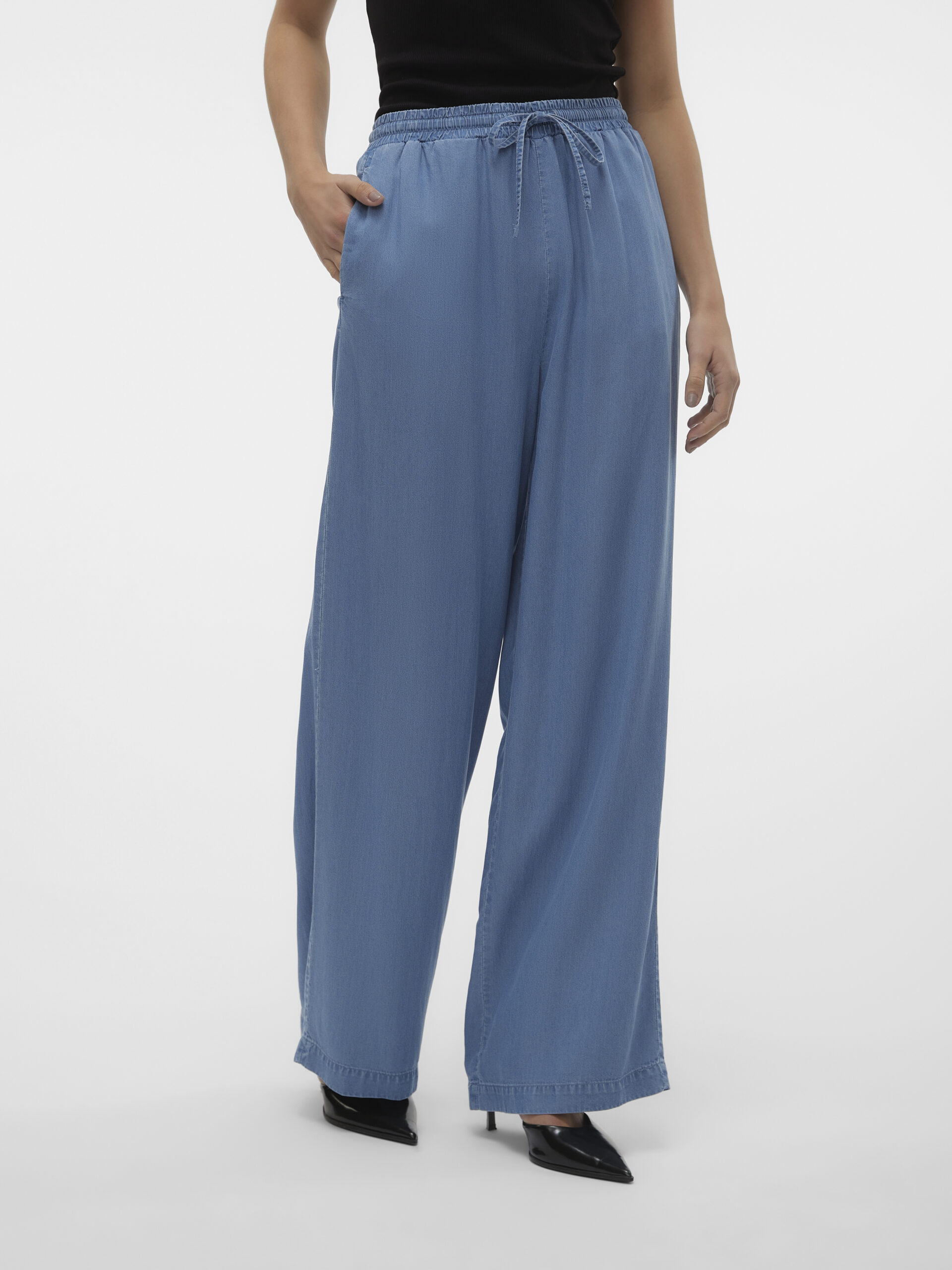 Lækreste tencel bukser fra VERO MODA, med bredde ben og elastik i taljen.