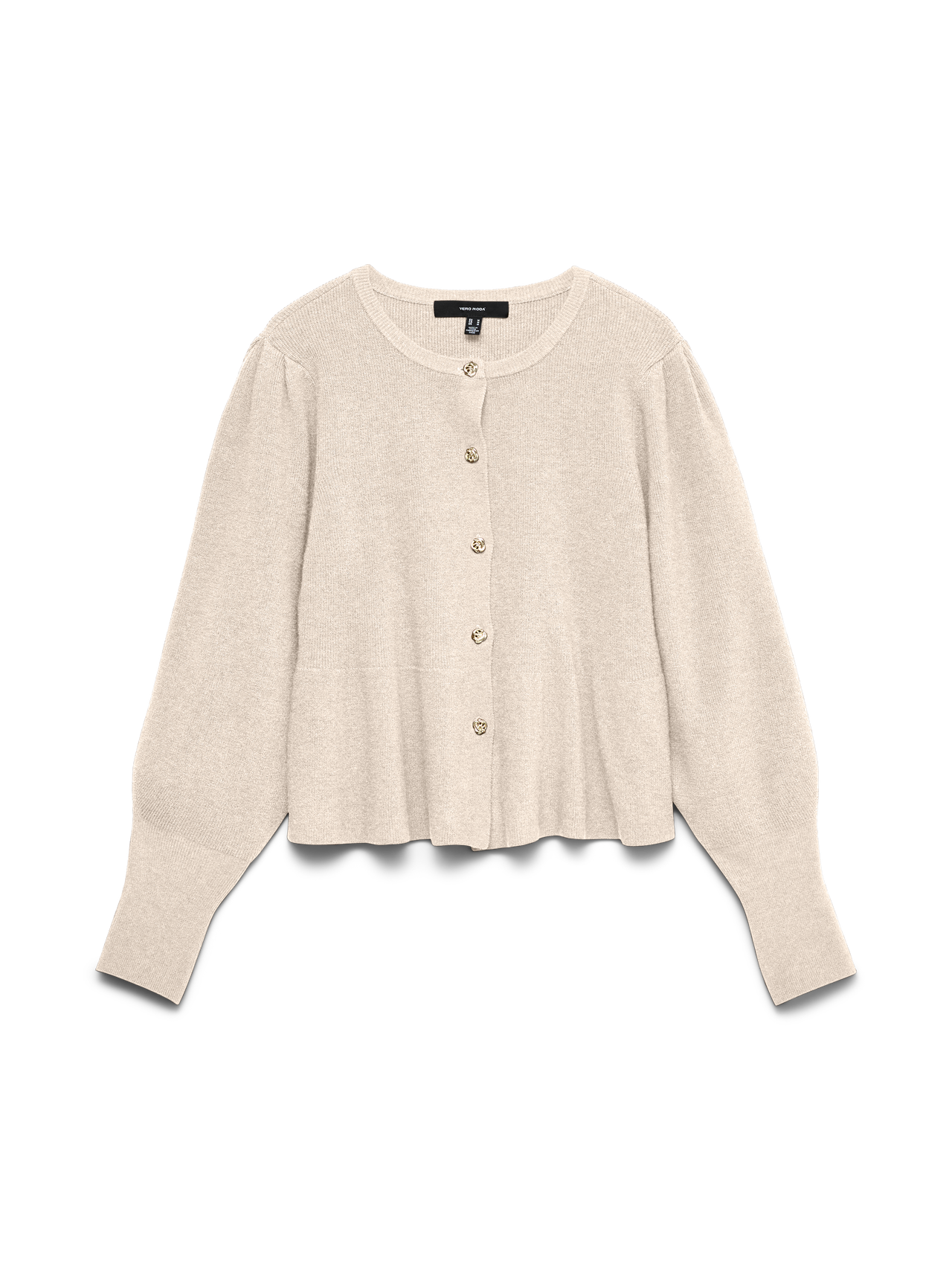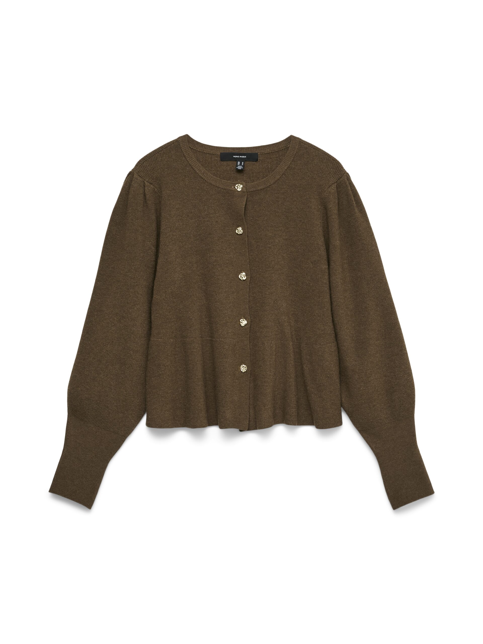Mega flot fitted-strik fra VERO MODA, med guld knapper hele vejen ned, og med peplon.