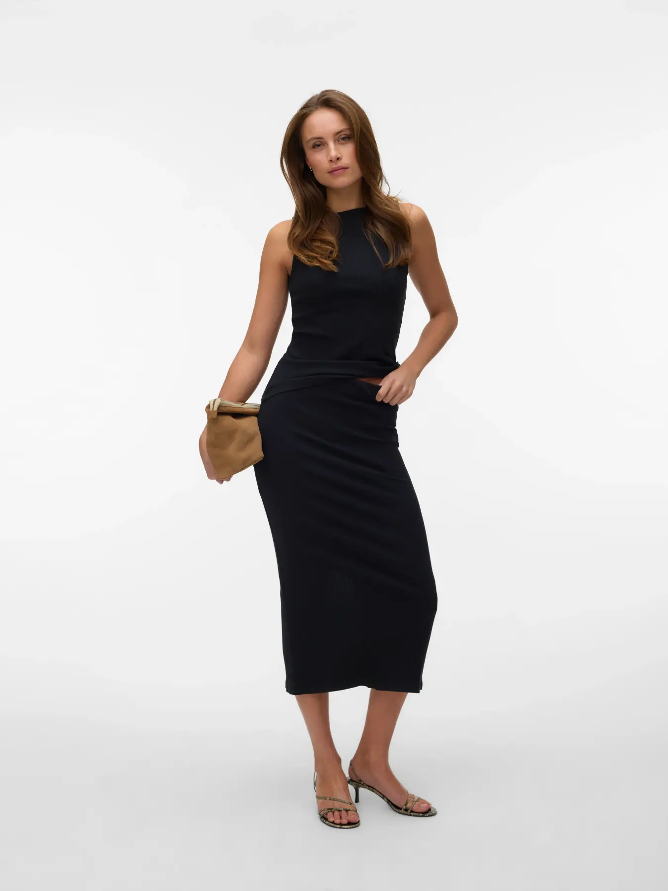 Sød nederdel fra VERO MODA. Nederdelen er mellemhøj taljet, ankellængde og har et slids bagpå.